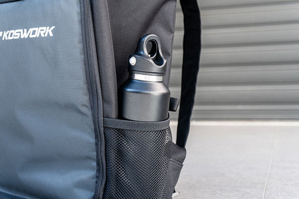 *Side Storage Options: One side features an elastic mesh pocket perfect for water bottles. The opposite side includes a reinforced zipper pocket for tools, parts, and accessories.